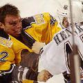 8 mars 2003 - Radek Bonk hjá Ottawa Senators fellir Sean Donovan í Pittsburgh Penguins. Leikurinn endaði 5-1 Senators í hag.